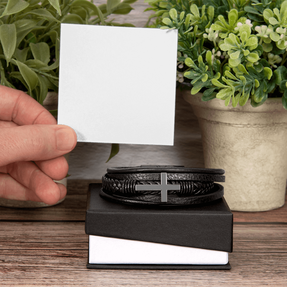 This Men's Cross Leather Bracelet is the perfect keepsake for someone special in your life. Handcrafted with care, this piece features braided vegan leather and a sleek stainless steel cross. This would make an ideal gift for your beloved partner, family members, or dear friends on special occasions like anniversaries, birthdays, or any event where you want to express your love and appreciation in an unforgettable way.